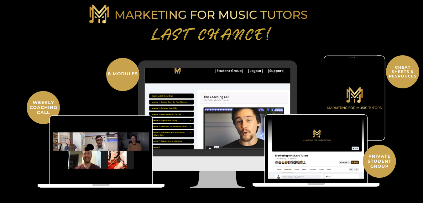 • Module 5 - Become a Facebook Ads expert, so you can generate leads & bookings whilst you teach! (VALUE $997)